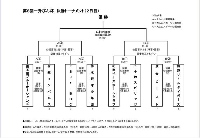 会場:大仏山公園野球場、大仏山スポーツセンター